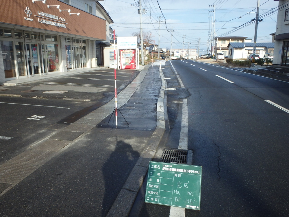 八戸市発注の新井田白銀線道路改良工事(その1)が完成しました。